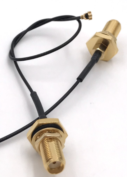 Cable Assembly, SMA Bulkhead Female to U.FL Right Angle Plug, U113 Coax, 6 inch. Waterproof design: IP67 rated when mated. Frequency DC-6 GHz.