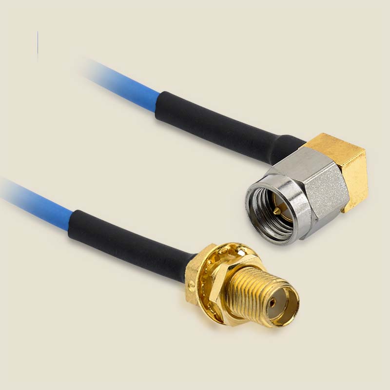 Cable Assembly, SMA Right Angle Male to SMA Bulkhead Female, 085CJ Jacketed Conformable Coax, 3 inches