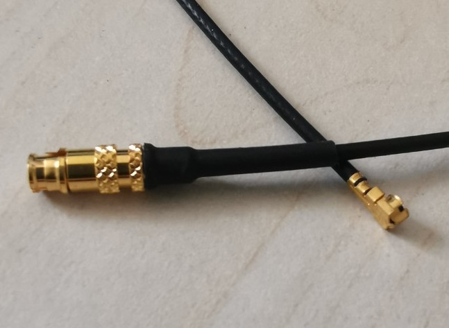 P1CA-SMFUFL-U137-24 is a flexible RF cable, SMPM female straight to U.FL right angle plug. The flex cable is 1 mm diameter and length is 24 inch.