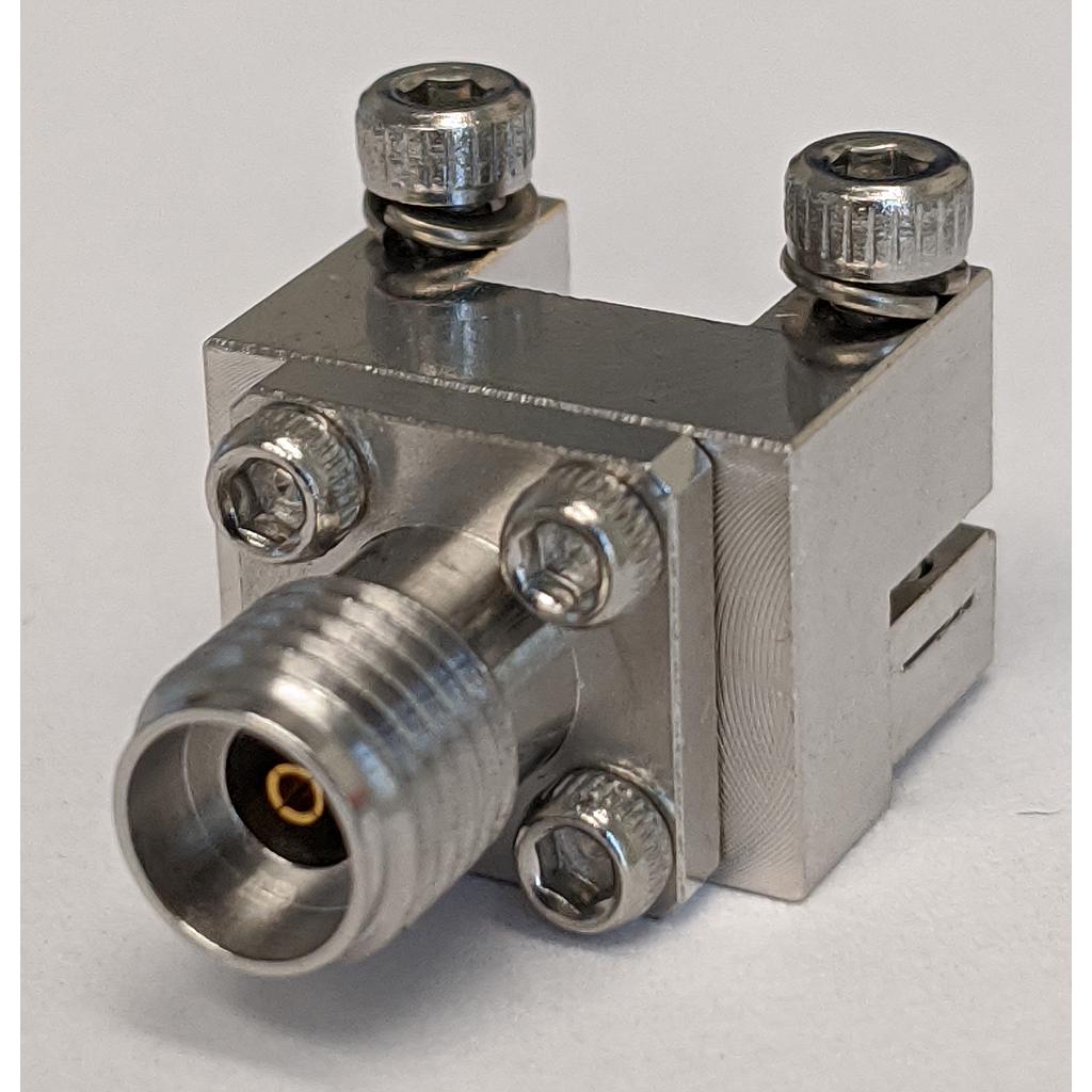 2.92mm female end launch PCB connector, .007 inch (0.18mm) diameter pin. Frequency DC to 40 GHz. Standard profile.